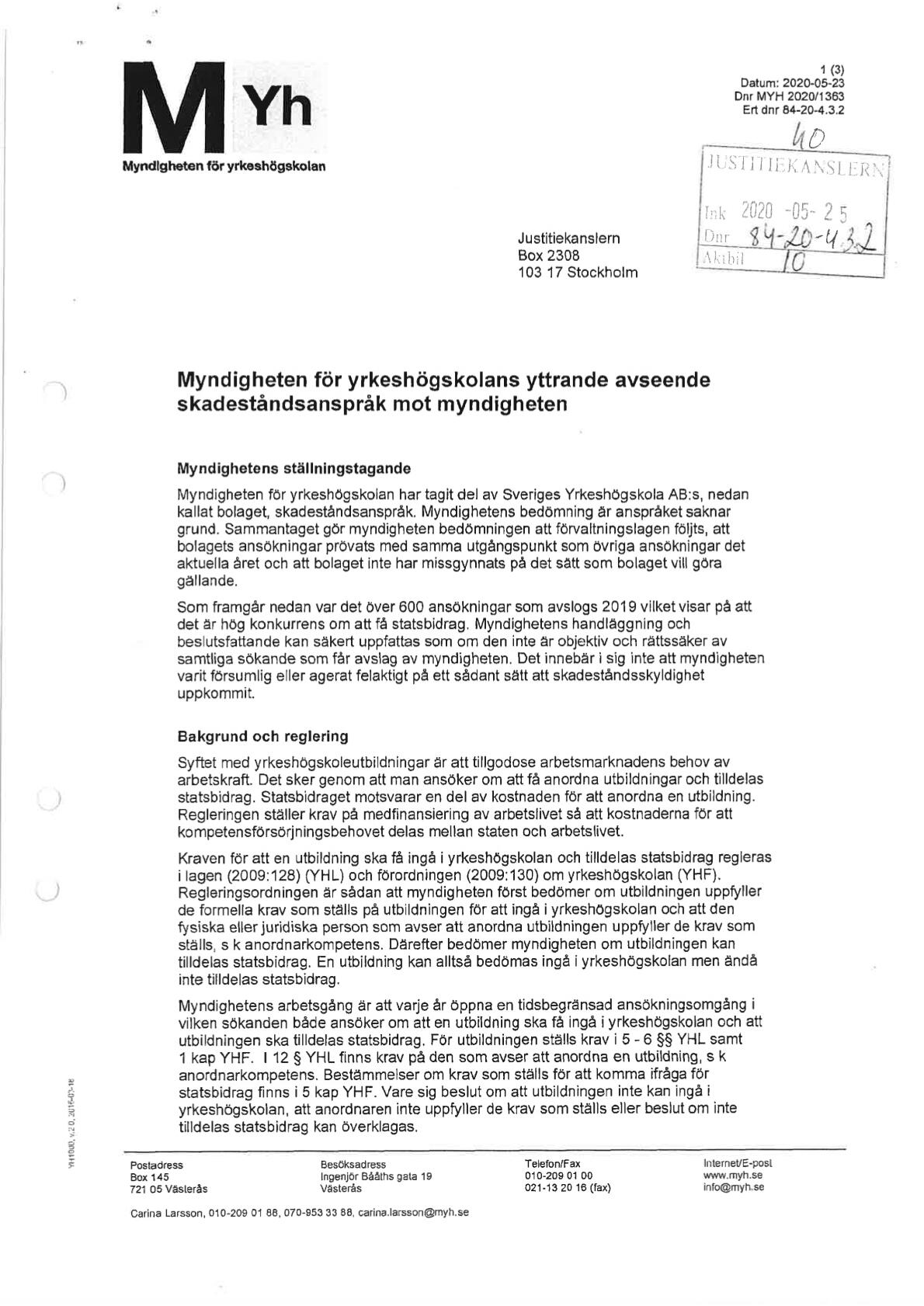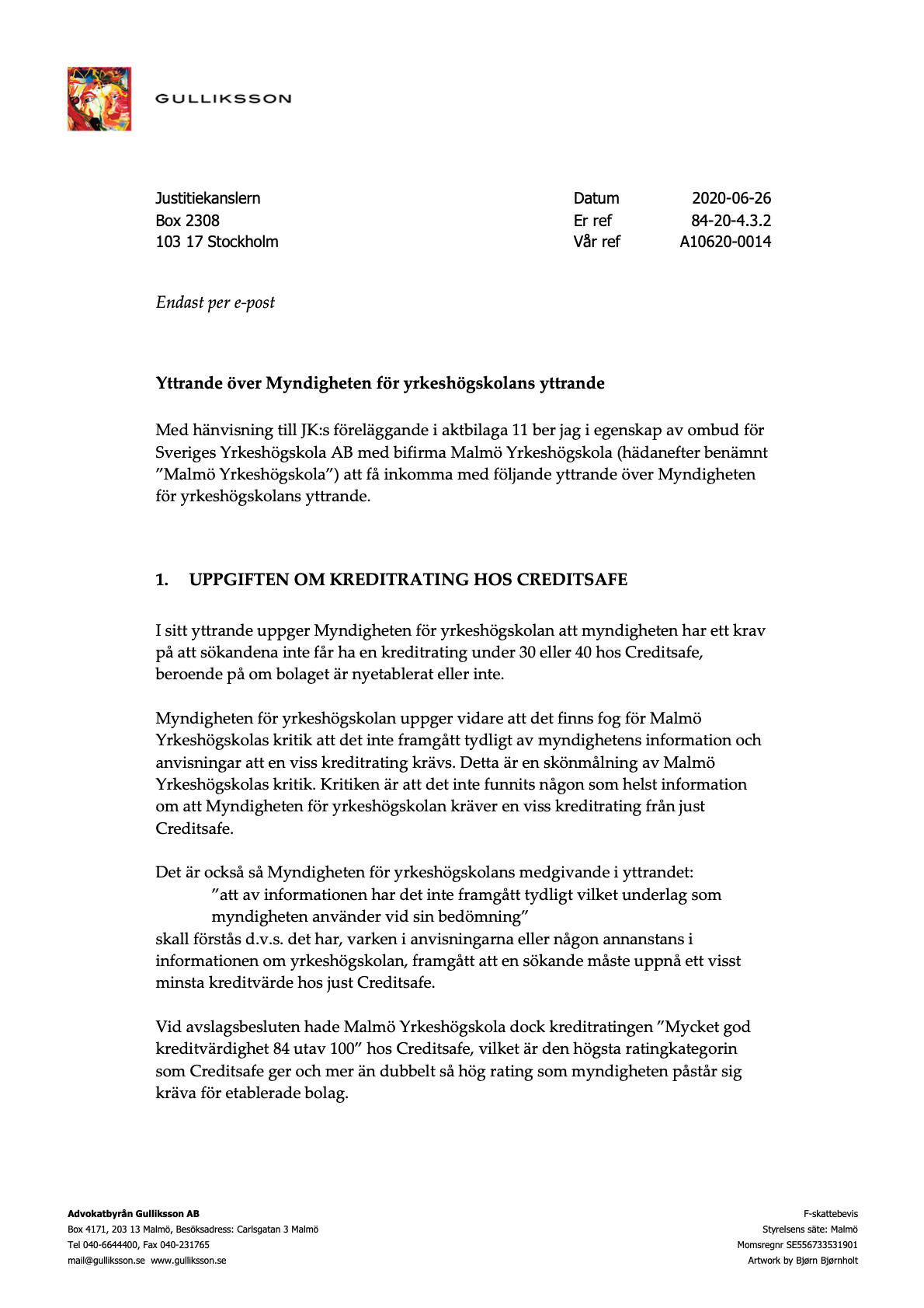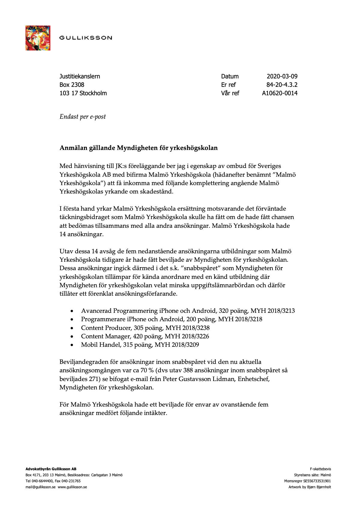 Här finns Malmö Yrkeshögskolas avslutningsyttrande, insänt 2020-05-29https://cla.es/Xkdttu
